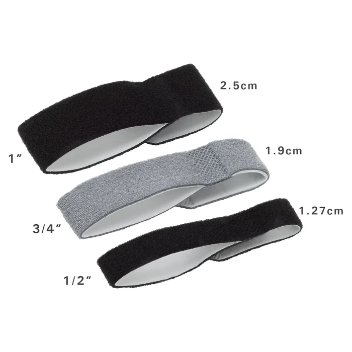For users with smaller hands, one or two of the ½-inch loops are recommended. For users with average size hands doing a variety of activities, the ¾-inch loops are recommended. For users who have large hands and are playing sports or working heavy-duty jobs, the larger loops provide more support. For larger hands or longer fingers, a wider strap at the base of the fingers combined with a half-inch strap near the fingertips is recommended.