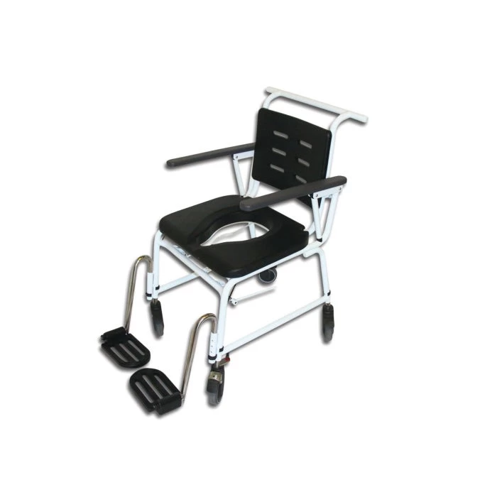 - The height adjustable frame features snap lock clips for different patient heights as well as placement of the chair over different sized commodes