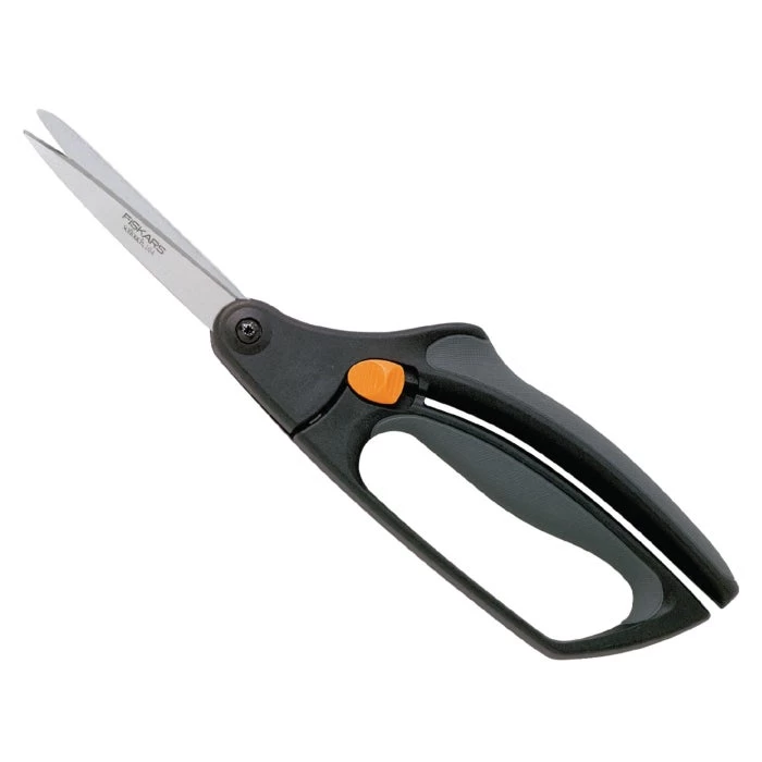 The Softouch Spring-Action Scissors use a built in spring to automatically open the scissors. This helps relieve the hand muscles and joints. The location of the sliding lock allows for one handed operation. When locked, the blades stay closed for safe storage and transportation.